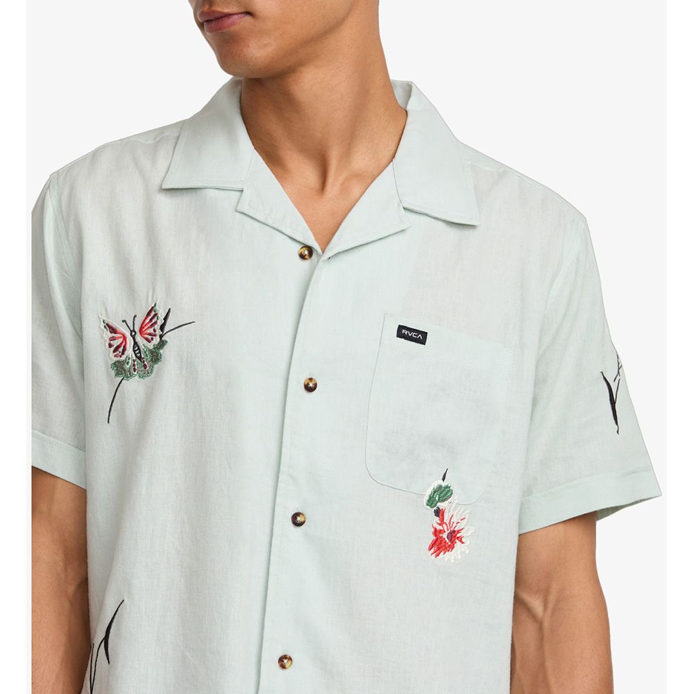 Marca: etiqueta RVCA en el bolsillo del pecho