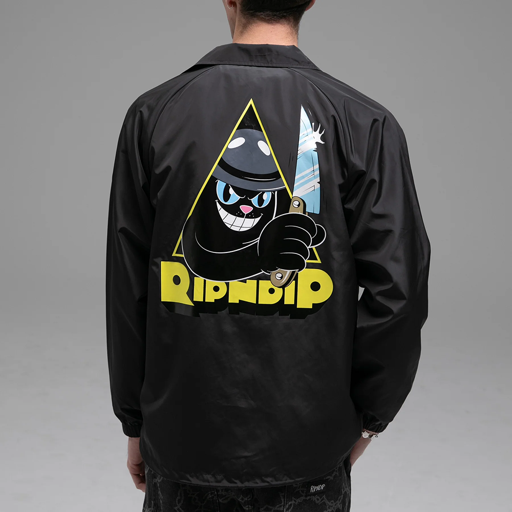 Chaqueta tipo cortaviento de Ripndip, con dibujo en vinilo en pecho izquierdo y espalda, etiqueta tejida en zona baja, bolsillos laterales, botones de clip.