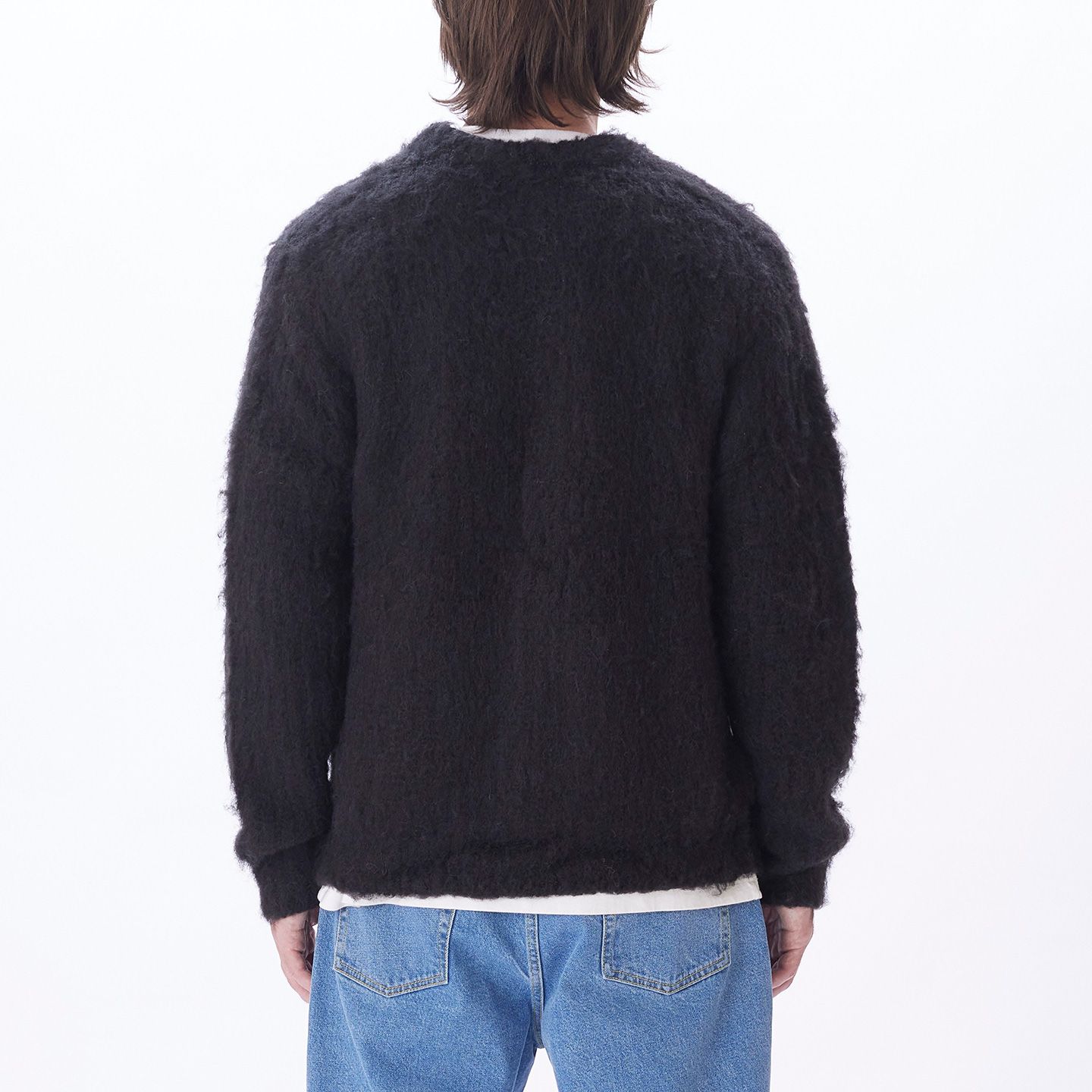 Rebeca de Obey Clothing con cierre de botón y cuello abierto, sueter con cara cepillada, bolsillos.
